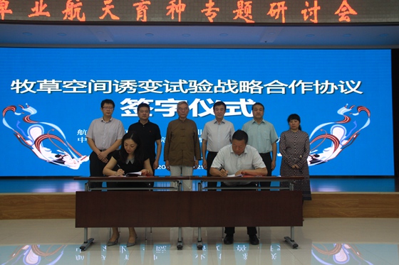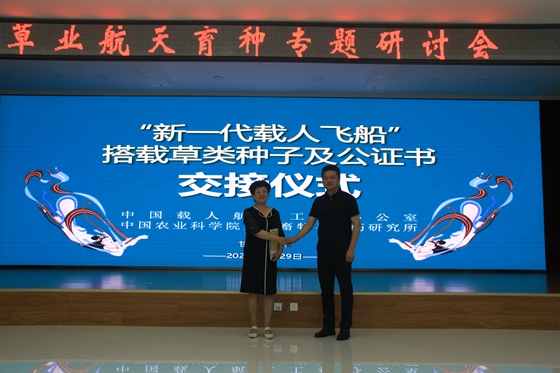 在会上,中国载人航天工程办公室综合计划局陈杰局长向研究所阎萍副所长交接了新一代载人飞船试验船搭载的草类种子及公证书。航天育种产业创新联盟和中国农业科学院草原研究所分别与研究所签订了“牧草空间诱变试验战略合作协议”和“草业科技创新战略合作协议”。中国高科技产业化研究会现代农业与航天育种工作委员会赵辉主任、中国农业科学院草原研究所林克剑等7位专家分别做了专题学术报告。