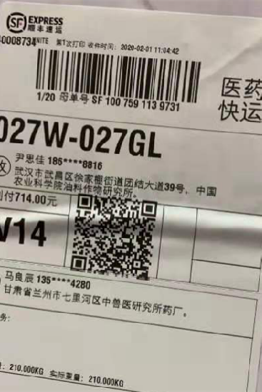 然而,新的问题又出现了,物流不畅。副所长李建喜又亲自联系物流部门,通过特殊渠道,以最快的速度于2月1日将消毒药品发往武汉。