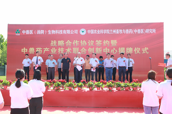 近日,研究所所长张永光带领专家团队先后与四川省羌山农牧科技股份有限公司、成都中牧生物药业有限公司、中兽医(汤阴)生物科技有限公司、山东德州神牛药业有限公司、山东迅达康兽药有限公司等兽药(中兽药)企业开展科技合作交流、现场指导与技术转让等事宜。研究所将发挥人才、技术、平台与成果等方面的优势条件,针对企业技术与新产品需求,开展个性化的科技服务与产业扶强,提升研究所科技成果转化能力和水平。5月29日,研究所在安阳汤阴与中兽医(汤阴)生物科技有限公司签字战略合作协议,为中兽药产业技术联合创新中心揭牌。汤阴县人民政府副县长徐泽颖,安阳市农业农村局、工信局、安阳市农科院等有关部门的领导专家出席;5月31日,在山东德州与山东德州神牛药业有限公司签订技术服务合作协议。研究所原所长杨志强、副所长张继瑜、李建喜、科技管理与成果转化处处长王学智等参加了活动。